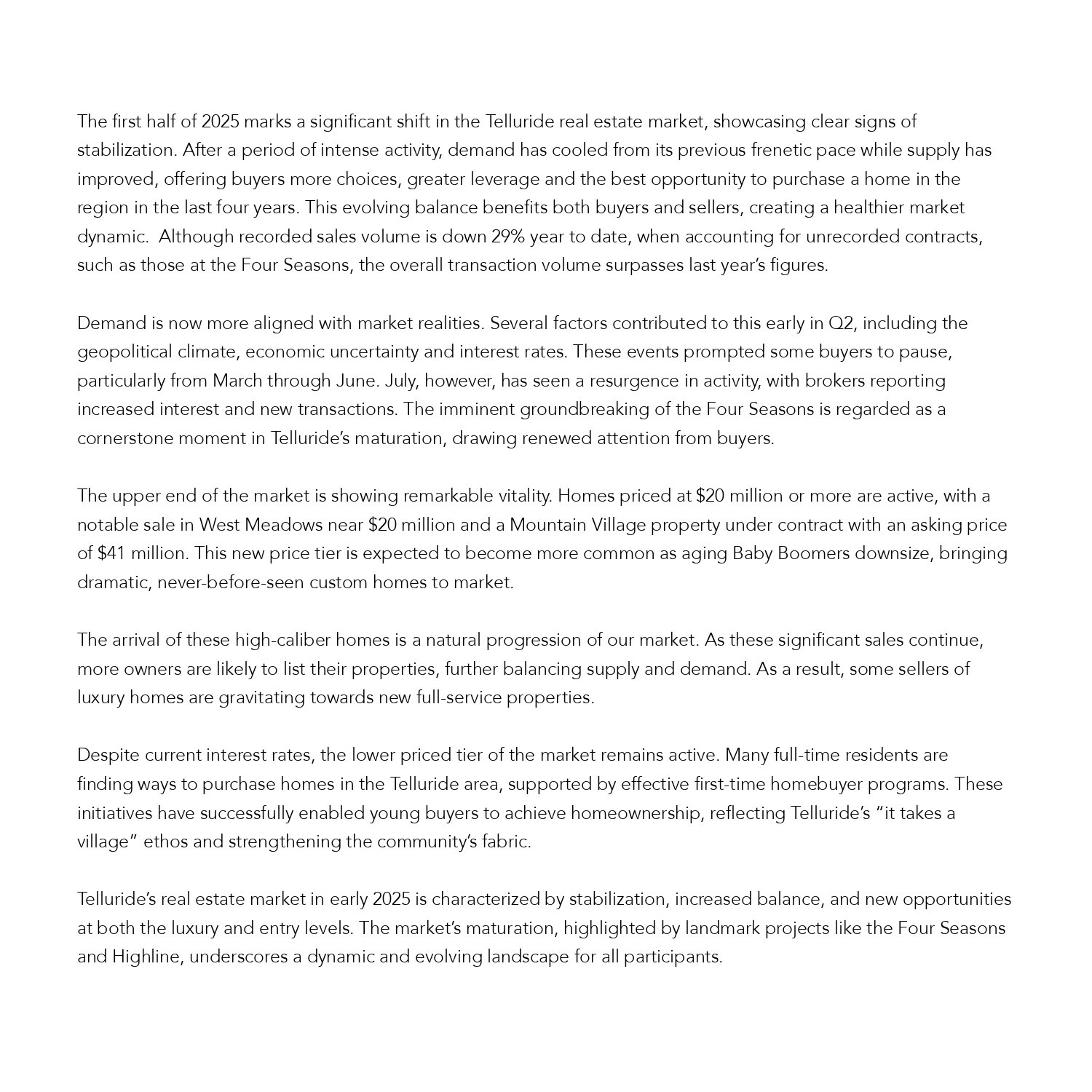 2025 Telluride Market Report | 2nd Quarter